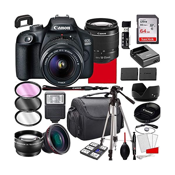 Canon EOS 4000D DSLR Camera with 18-55mm f/3.5-5.6 Zoom Lens , 64GB Memory,Case, Tripod and More (28pc Bundle)
