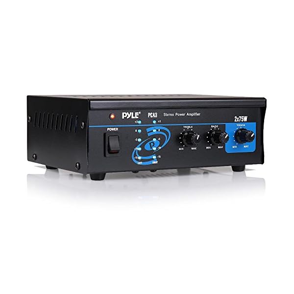 Pyle Home Home Audio Power Amplifier System – 2X75W Mini Dual Channel Sound Stereo Receiver Box w/ LED – For Amplified Speakers, CD Player, Theater via 3.5mm RCA – For Studio, Home Use – Pyle PCA3