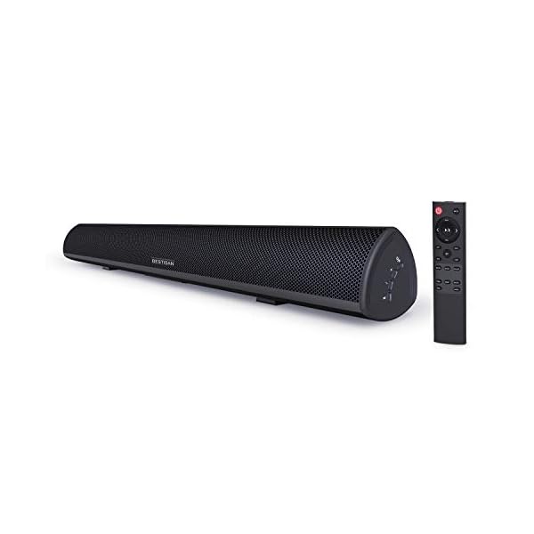 Sound Bar, Bestisan 80W Home Theater Soundbar System with HDMI-ARC Function, Wired and Wireless Bluetooth 5.0 Audio Speaker (Treble/Bass Adjustable,34-Inch, Wall mountable)