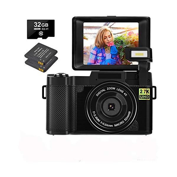 Digital Camera 30.0 MP Vlogging Camera 2.7K Full HD Vlog Camera with 3 Inch Flip Screen and Vlogging Camera for YouTube with 2 Batteries (1)