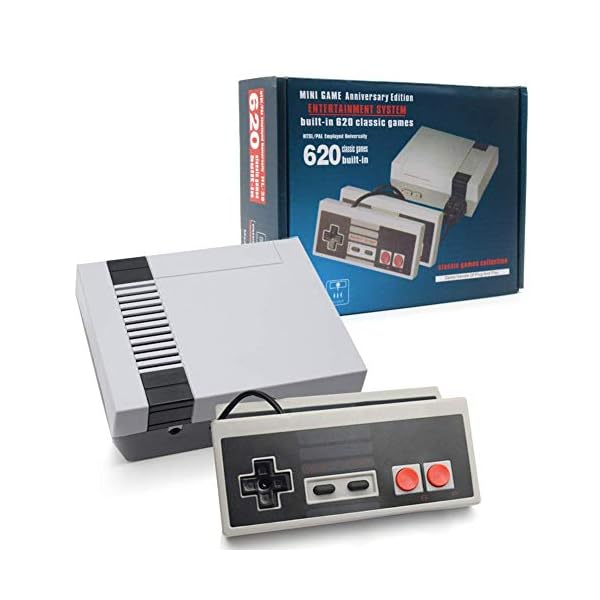 FourPlusOne Retro Game Consoles, AV Output 8-bit Video Games Console Built-in 620 Games, 2 Pack Classic Handheld USB Controller for NES Games, is an Ideal Gift for Kids and Family