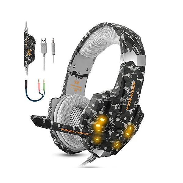 EasySMX Gaming Headset for Xbox One S, X, PS4, PC with Soft Breathing Earmuffs, Adjustable Mic, Comfortable Mute & LED Lights, Xbox Headset for Laptop, Nintendo Switch