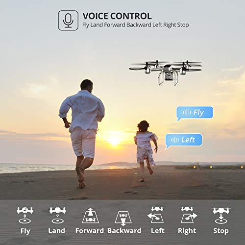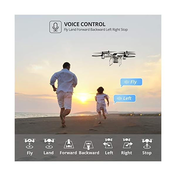 [SMART PHONE APP CONTROL] You can draw a flight path on the app map interface; control it with gravity mode; give it commends with voice control, like “right/stop/left”. Wonderful hands-free features for kids and it adds fun to your flight.