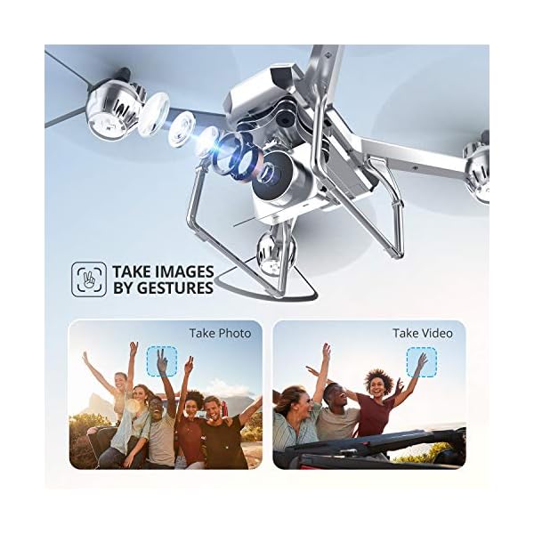 [1080P HD FPV CAMRE WITH GESTURE CONTROL] This advanced camera helps to capture memorable moments in terms of 1920*1080P Photo/1280*720P Video. The images can be send back and saved to your phone and be shared to your social media directly. Besides, camera can be triggered by gestures, much more convenient to taking a picture or recording a video. SD Card Not Required.