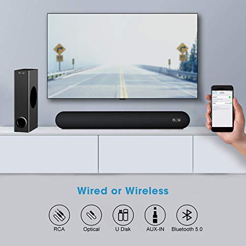SAKOBS Sound Bars for TV, Audio Soundbar TV Speakers with Wired & Wireless, 32 Inches Sound Bar for Home Theater, Optical/Aux/RCA Connection and Remote Control