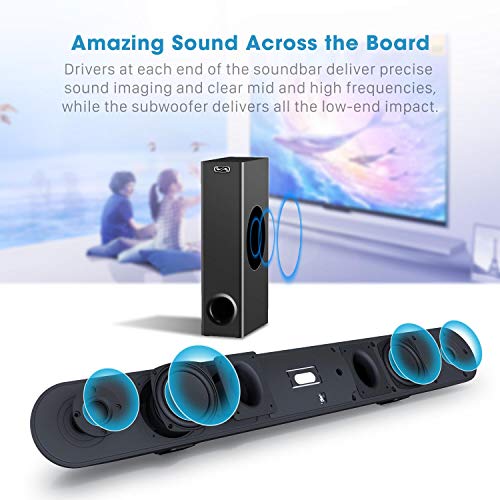 Bestisan Soundbar 28-Inch 80W with HDMI-ARC, Bluetooth 5.0, Optical Coaxial USB AUX Connection, 4 Speakers, 3 EQs, 110dB Surround Sound Bar Home Theater (28 inch Light Black)
