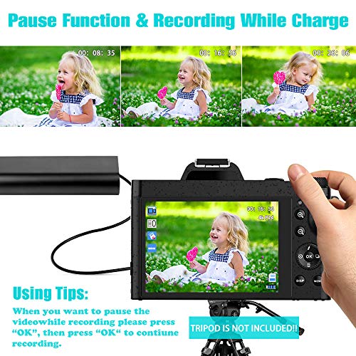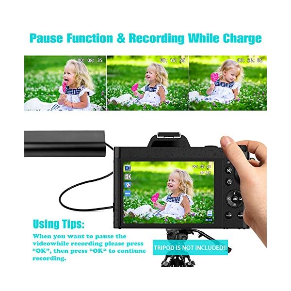 【Recording while Charging and Pause Function】This youtube camera can recording while charging, you can pause the video by pressing “OK”, then press “OK” to continue recording video.The digital camera also supports Slow Motion,Video Capture,Motion Detection,Loop Recording,Continuous Shooting, Face Capture, Beauty Function, Self-Timer, Playback Modes, Anti-Shaking Function. You can record your wonderful moments through these special features.