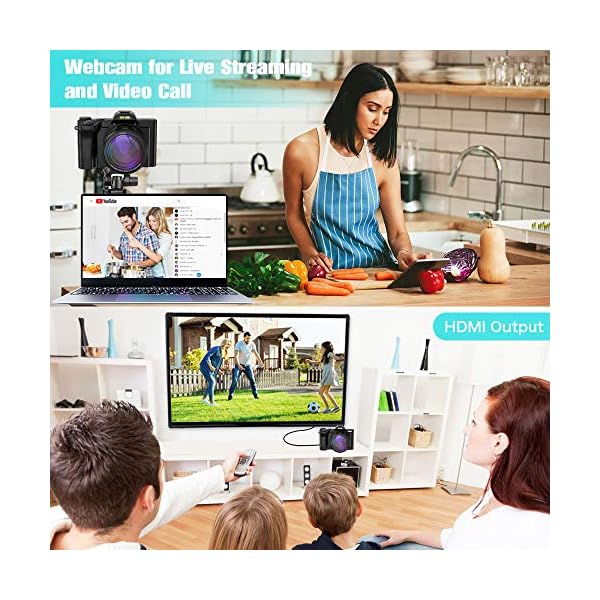 【Video camera with WiFi Connection】This 4k camcorder with Wifi function can connect to your phone without any cable. It can be used as a webcam. Connect the camcorder to your computer via USB cable and select PC Camera mode. Then you can start the live stream!! And it supports connect to TV with HDMI cable and playback the videos you took in high definition.