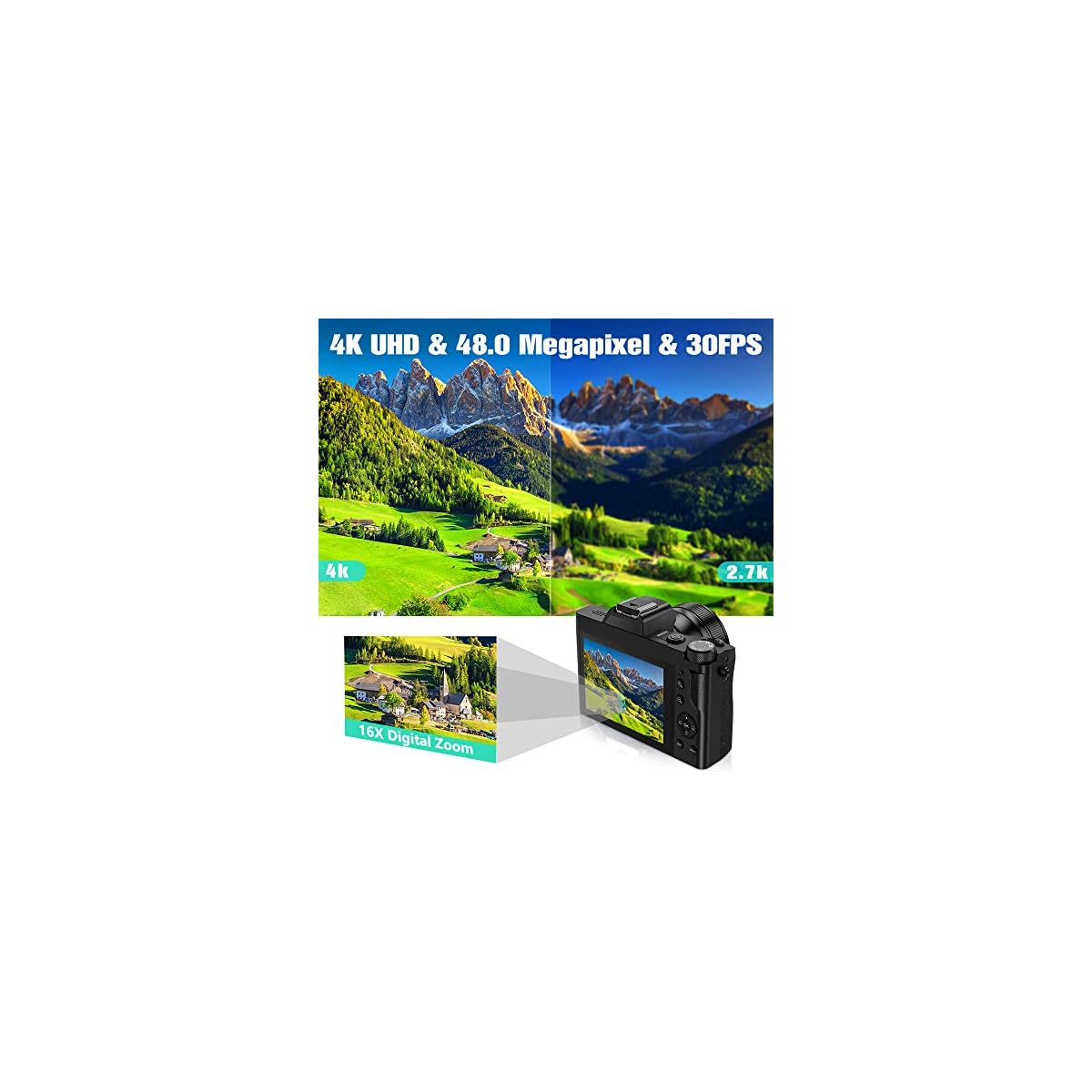 AiTechny 4K Digital Camera, Vlogging Camera for YouTube 48MP Video Camera Camcorder with WiFi 3.5″ IPS Touch Screen Wide Angle Lens 16X Digital Zoom YouTube Cameras