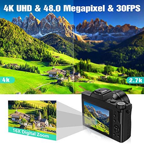 【4K 48MP Digital Camera with Touch Screen】Our digital camera is crystal and clear in image shooting and video. It records video up to 4K FHD 24 fps resolution. It can shoots picture at 48.0 megapixels. The 3.5″ IPS touch screen allows for higher-definition display, and the touch screen makes operation more easier.