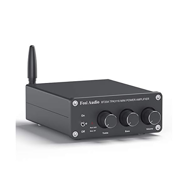 Fosi Audio BT20A Bluetooth 5.0 Stereo Audio 2 Channel Amplifier Receiver Mini Hi-Fi Class D Integrated Amp 2.0 CH for Home Speakers 100W x 2 with Bass and Treble Control TPA3116 (with Power Supply)