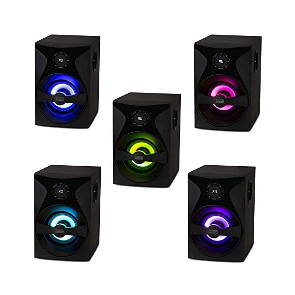 Bluetooth 5 1 Home theater speaker system – stream music from your phone to the built in Bluetooth receiver integrated power amp with 300 watts system power Pro surround function converts stereo to 5 1 Sound LED illuminated Sub with multi color and pattern flashing light display