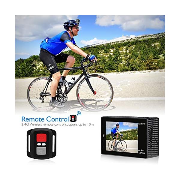 SPORTS CAMERA WITH WIFI AND HDMI: Sharing & editing videos from an action camera is easier with the free app. Just download the App on your phone or tablet and connect with this action camera. Wi-Fi signal ranges up to 10 meters. With HDMI Port allows you to connect it with television.
