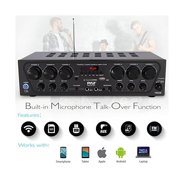 Home Home Audio Pyle Wireless Bluetooth Home Audio Amplifier System-Upgraded 6 Channel 750 Watt Sound Power Stereo Receiver w/USB, Micro SD, Headphone,2 Microphone Input w/Echo, Talkover for PA – PTA62BT.5