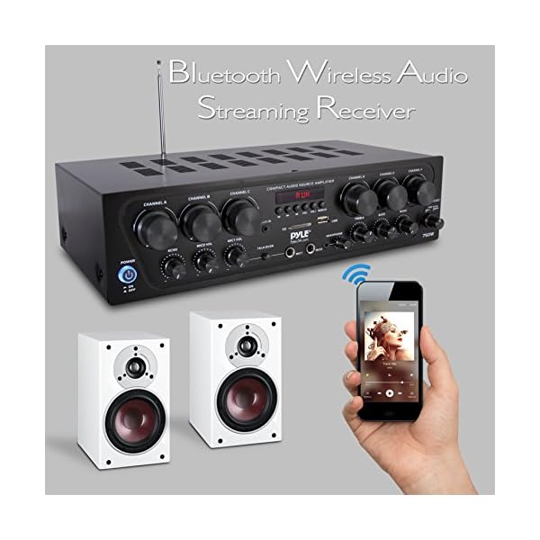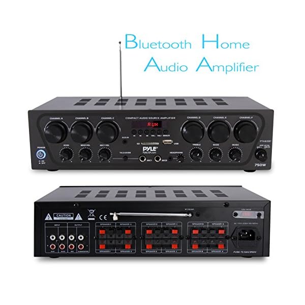 POWERFUL 750 WATT: The Pyle 6-Channel Bluetooth Home Audio Amplifier gives you 750W peak power which can be used for multi speakers w/ 4-8 ohms impedance allowing you to enjoy high quality audio. Perfect for your PA and home theater entertainment