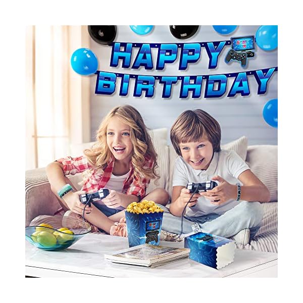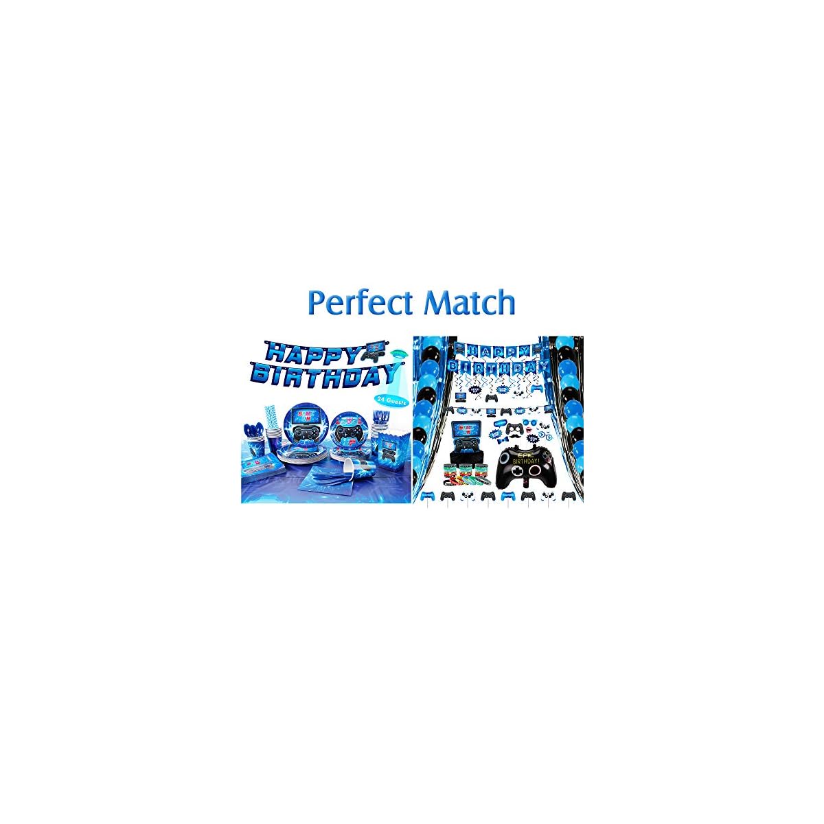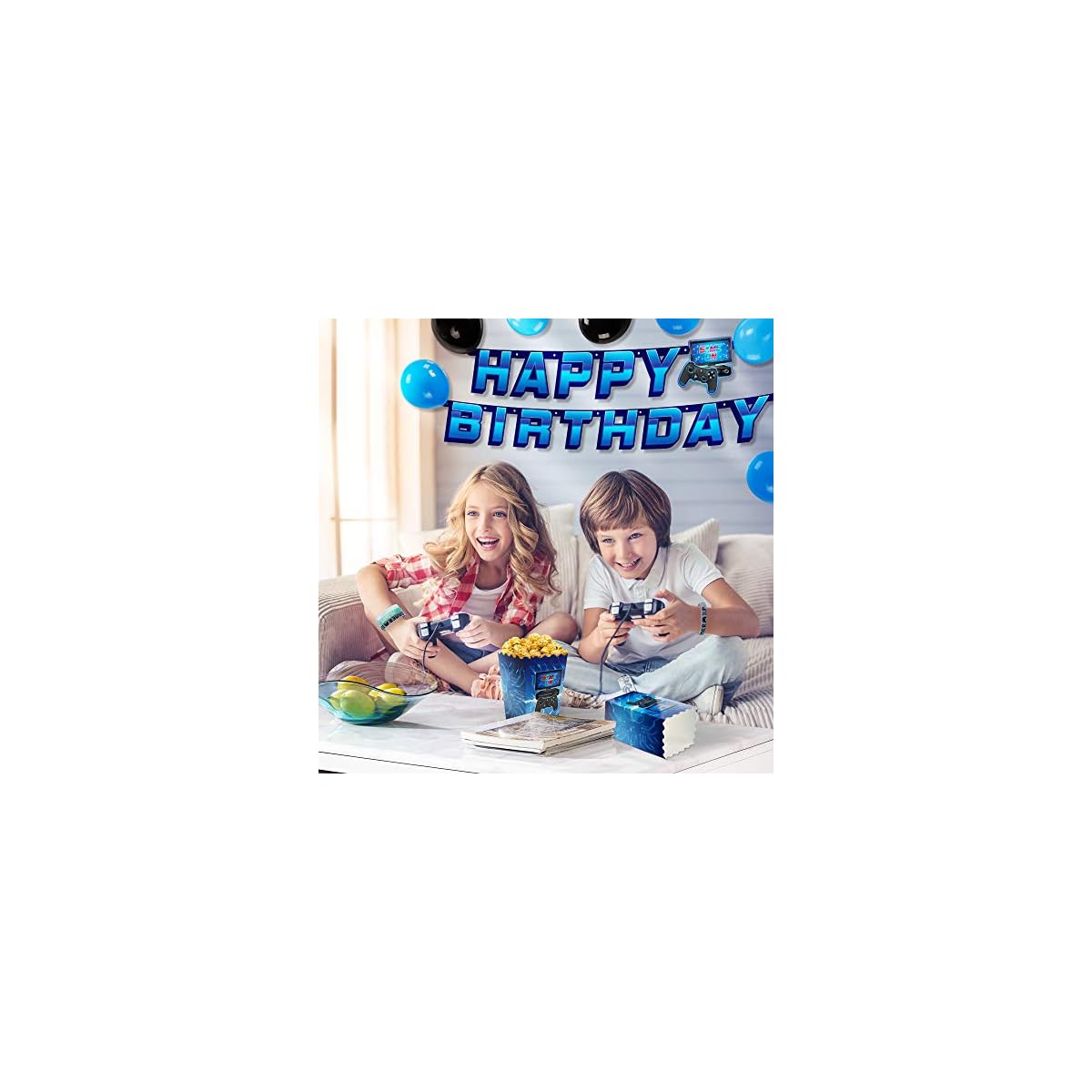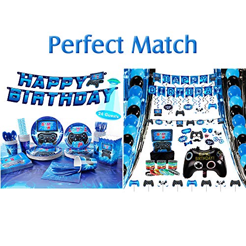DECORLIFE 200PCS Video Game Birthday Party Supplies Serves 24, Game on Birthday Party Supplies for Boys Include Tablecloth, Popcorn Boxes, Gaming Party Decorations