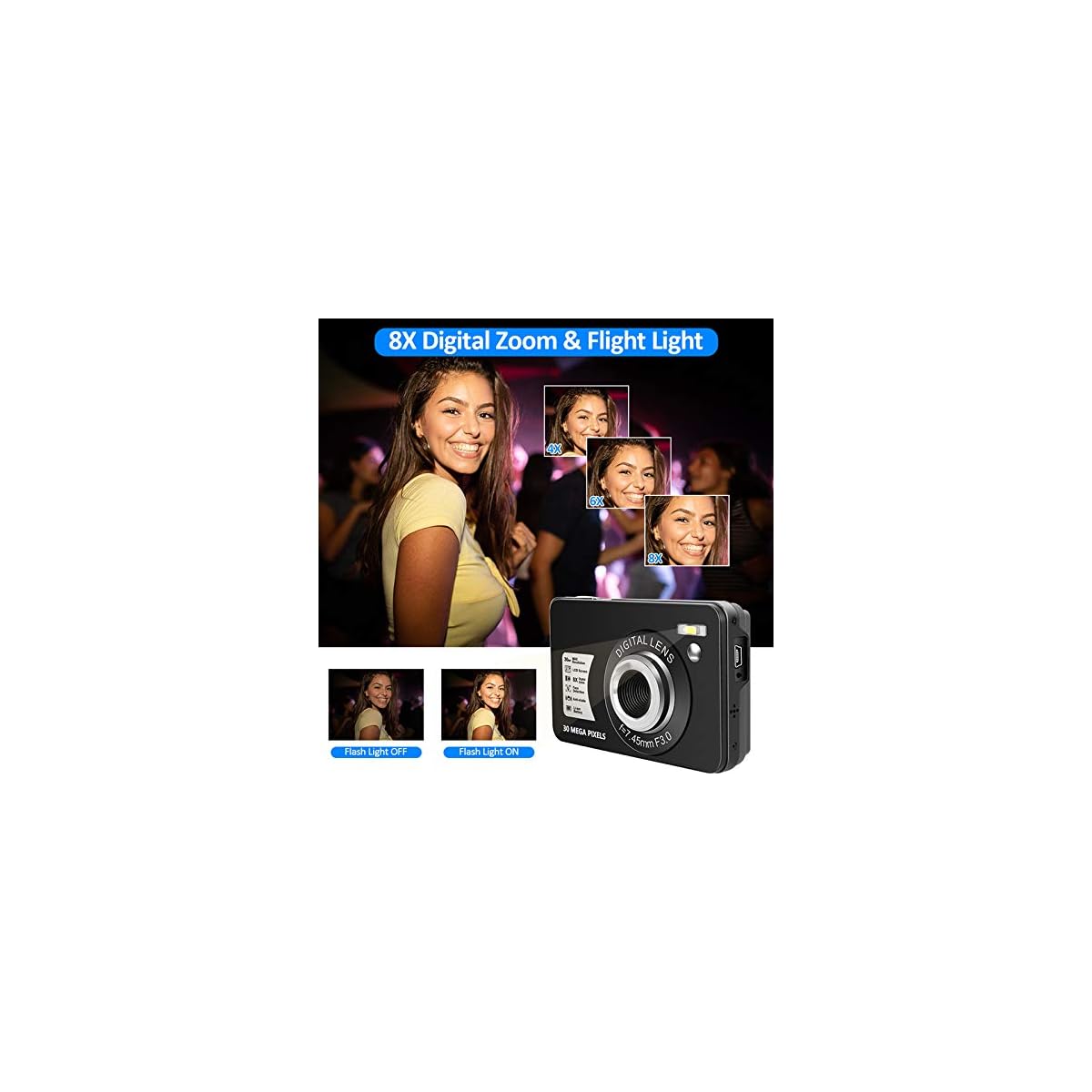 ❤【8X Digital Zoom & Flash light 】This point-and-shoot camera has a variety of functions, such as 8X digital zoom; supports smile shooting, the small vlogging camera can record every happy moment in your life; also has a flash function, which can take pictures in low-light environments.