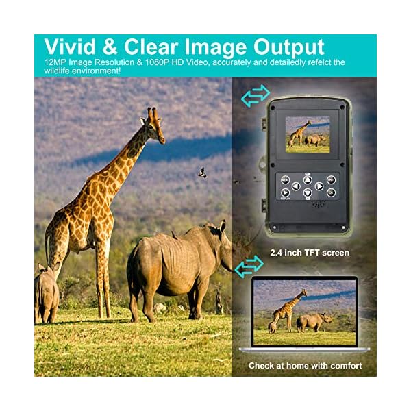 ✅ 【High Resolution Image & Video】With high-performance chip, this trail camera captures up to 12MP sharp and vibrant images and 1080P Full HD videos with super-clear sound in vivid colors by day and black & white shots by night. The 120-degree camera lens offers wide visual angle, helping you to keep an eye on a broader view of the wildlife world.