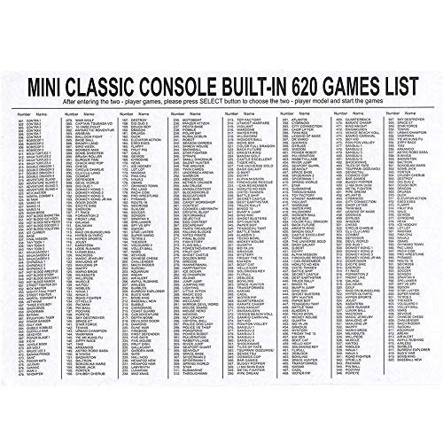 ✔【Classic Game】Built-in 620 games(some game repetitions in this console,Just about 500 different games),No need to insert cards or download games.
