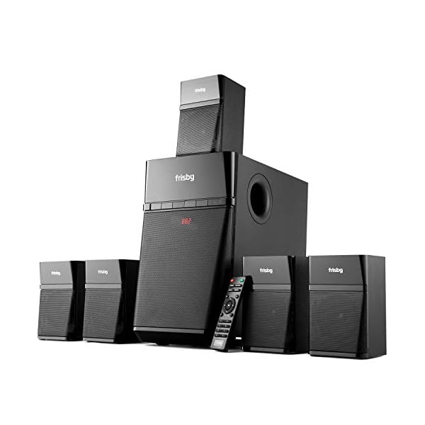 Frisby Home Theater 5.1 Surround Sound System with Subwoofer, Bluetooth Wireless Streaming from Devices & Media Reader, FM Radio, Digital Optical Output – Black – Estoreknight.com