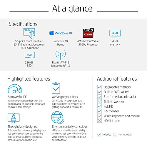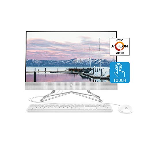 HP 24-inch All-in-One Touchscreen Desktop Computer, AMD Athlon Silver 3050U Processor, 4 GB RAM, 256 GB SSD, Windows 10 Home (24-df0030, White), Snow White