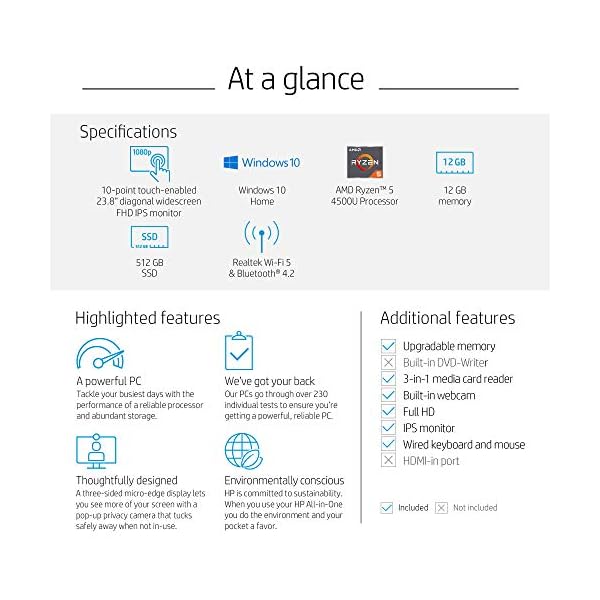 HP 24-inch All-in-One Touchscreen Desktop Computer, AMD Ryzen 5 4500U Processor, 12 GB RAM, 512 GB SSD, Windows 10 Home (24-dp0160, Silver) – Estoreknight.com