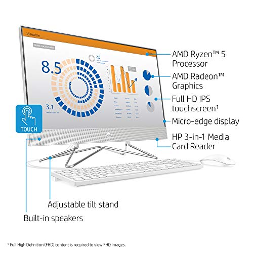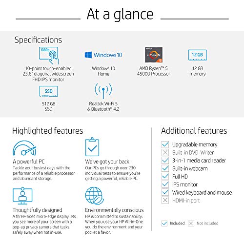HP 24-inch All-in-One Touchscreen Desktop Computer, AMD Ryzen 5 4500U Processor, 12 GB RAM, 512 GB SSD, Windows 10 Home (24-dp0160, Silver)