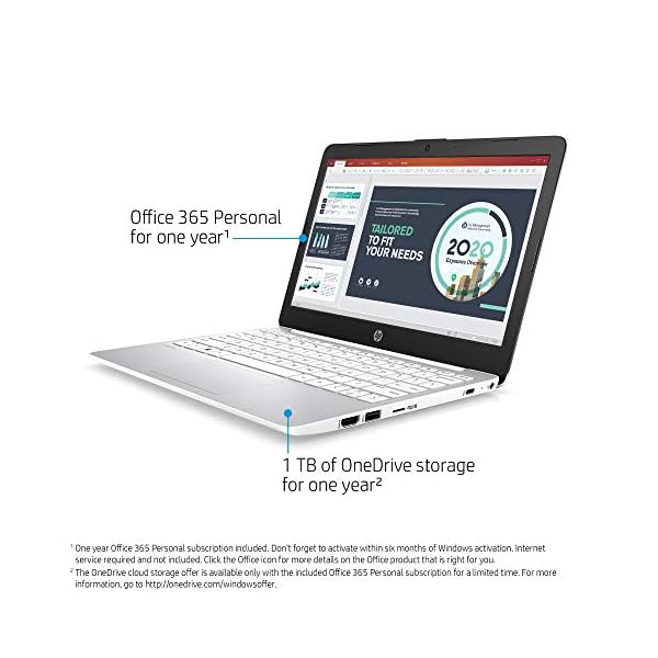 HP Stream 11.6-inch HD Laptop, Intel Celeron N4000, 4 GB RAM, 32 GB eMMC, Windows 10 Home in S Mode with Office 365 Personal for 1 Year (11-ak0020nr, Diamond White)