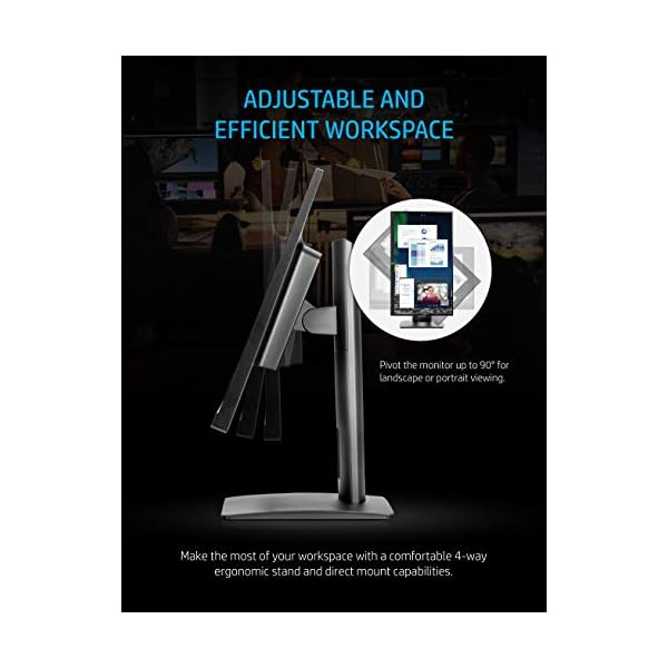 4-Way Ergonomic Viewing — 90° rotation for horizontal (landscape) and vertical (portrait) viewing modes, adjustable height and tilt (-5° to 30°), and 178° positional viewing for the best quality at any angle