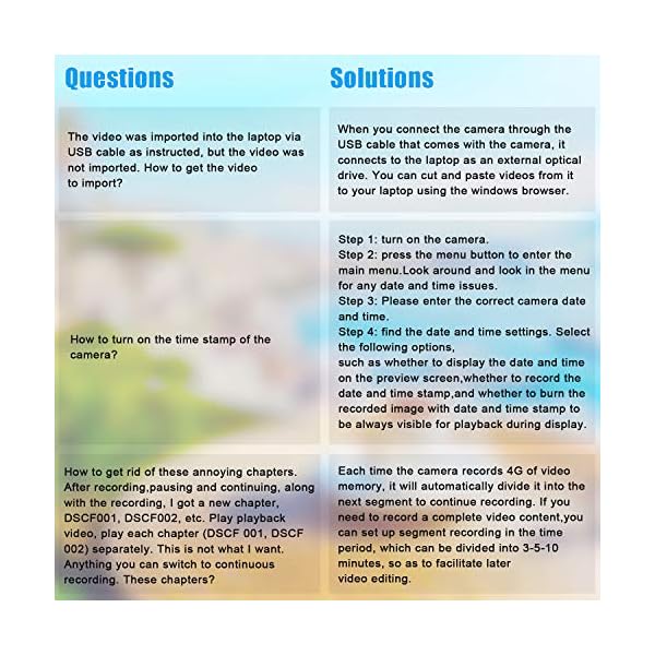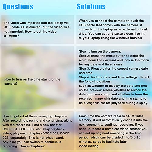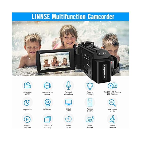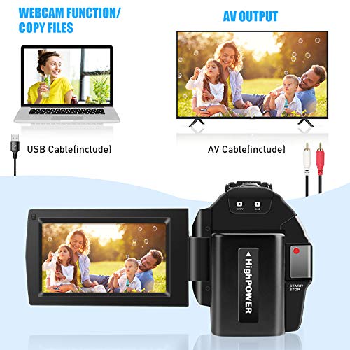 【Multifunction】The camcorder supports the pause function,record at intervals, low-speed video,motion detection, time-lapse, self-shooting and continuous shooting. This lightweight, small and easy-to-use digital camcorder is equipped with high-class material and advanced technology to record high-quality image. It a good choice for YouTube and Vlogging. You can download the video to your computer through a USB cable and then edit it before uploading to your social media.