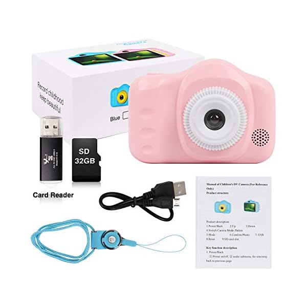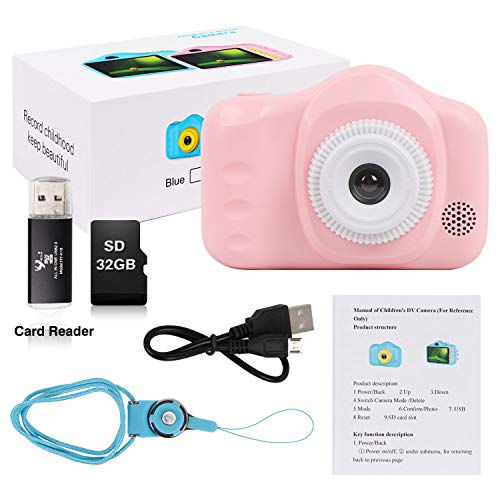 【12 Megapixels & 32GB High Capacity】This children’s camera has dual lens, support selfie mode, and 1080P HD video, greatly improved the photos and video definition. Let kids enjoy the fun of taking pictures and video. Each kid camera comes with a 32GB micro SD card and SD Card Reader. No need to pay extra costs to purchase.