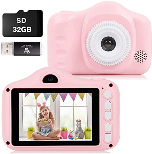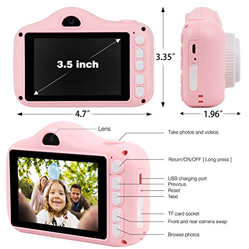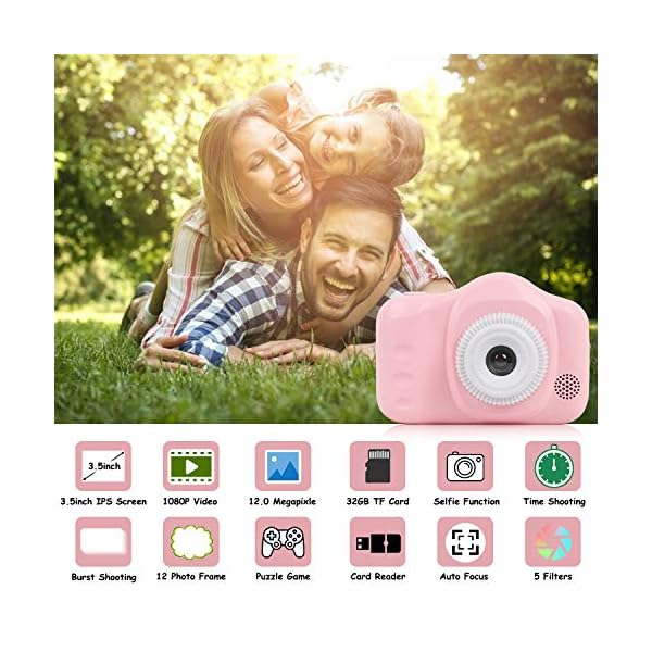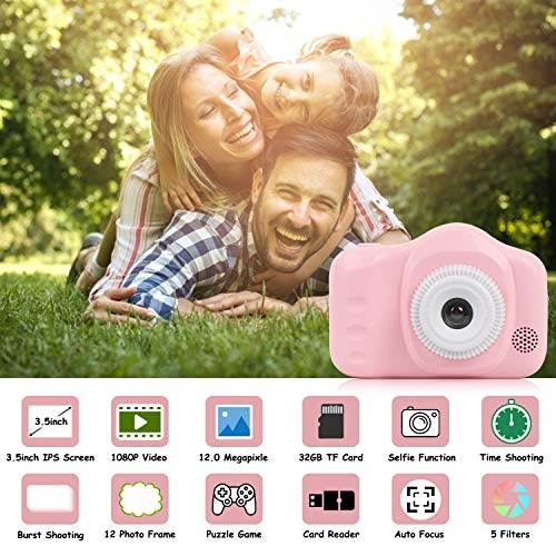 Kids Camera, 12MP Digital Camera for Kids Gifts, 3.5 Inch Large Screen 1080P Digital Video Camera for Kids with 32GB SD Card, SD Card Reader for 3-10 Year Old Children’s Camera (Pink)