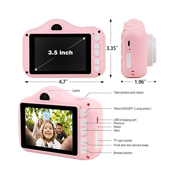 【2020 Upgraded 3.5 Inch Large Screen】This kids digital camera with 3.5 inch large screen, with a wider field of view, you can better shoot videos and photos, it will record your child’s growth and wonderful moments.