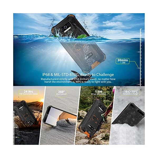 ▶▶【IP68 Waterproof Dustproof Drop-proof】The rugged phone OUKITEL WP5 has been designed with an IP68 rating and a wide operating temperature range of -10°C to 70°C , specific for outdoor use, has drop proof, waterproof and dustproof (Resistant to survive from 1.2 meters dropping and waterproof under 1.5 meters until 30 minutes)