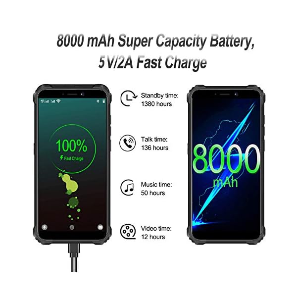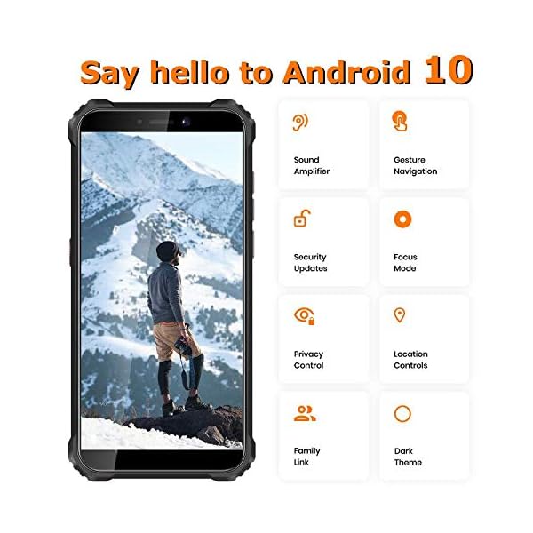 ▶▶【Android 10 System & 4GB RAM+32GB ROM】Oukitel WP5 cellphone with 4x Cortex-A7 MT6761 processor and pure Android 10, offers an incredibly remarkable system operating experience. With 4GB RAM + 32GB ROM storage (expands to 128GB), the mobile phone has enough space to download all your favorite music, videos, and photos.