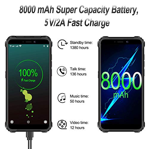 OUKITEL WP5 8000mAh Battery IP68 Waterproof Rugged Smartphone, 5.5in HD+ 4GB 32GB Unlocked, Face ID Fingerprint Triple Camera Global Version 4G LTE GSM Cell Phone (Black)