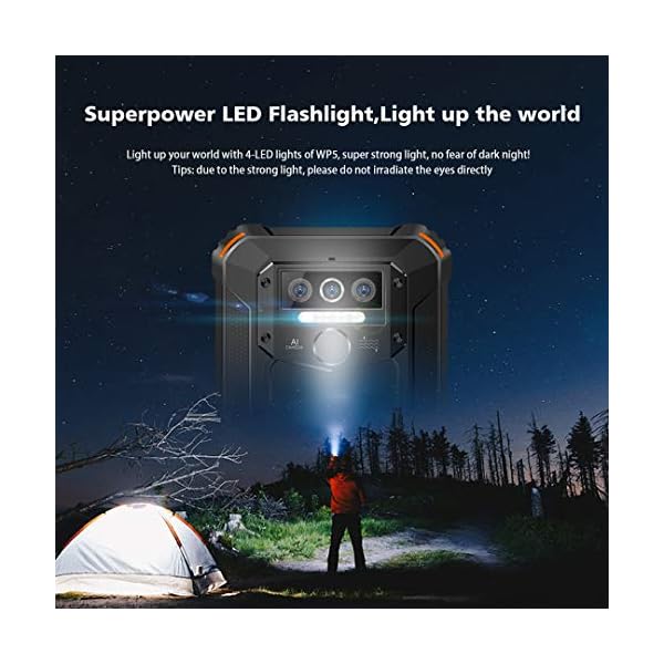 🏆 【Rear camera with three lenses, four glare LED flashlights】Rear camera with three 13MP + 5MP + 2MP lenses, plus 5MP front camera, shockproof mobile phone WP5 provides you with an excellent photography experience (Aperture F / 2.0, AI Beauty, PDAF). Super powerful 4-LED flashlight-no matter where you are, darkness is no longer your enemy!