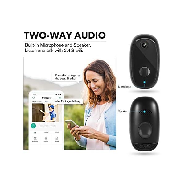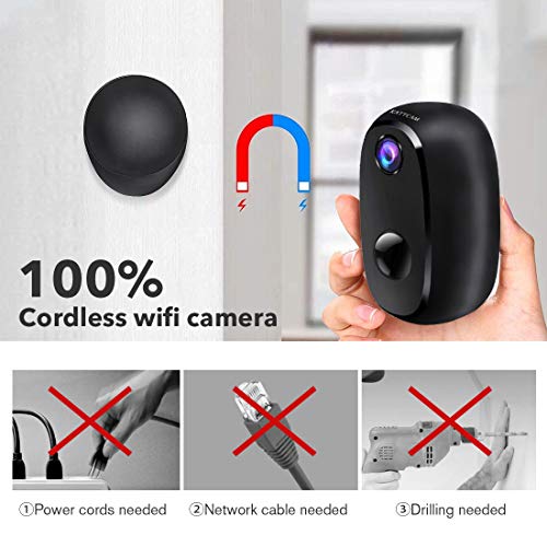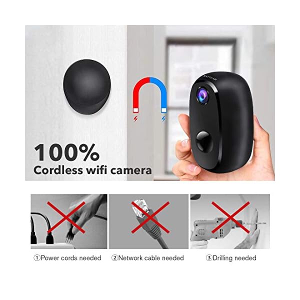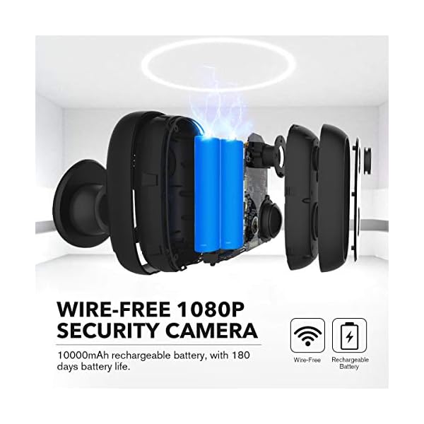 Large Capacity Battery & 100% Wire-free: Wireless security camera with built-in 10000mAh battery Can work 2-3 months indoors or outdoors and works stably with 2.4 GHz Wi-Fi. Neatly simple installation requires no drilling or no cabling required. Get rid of the troubles caused by traditional wired cameras and time consuming.