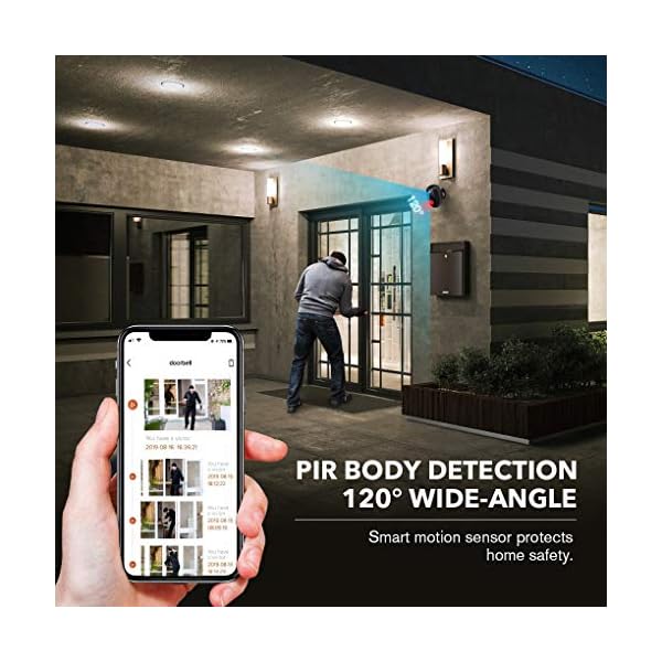 FULL HD 1080P & Night Vision: Wifi camera resolution of 1920 x 1080 clearly shows every home or company detail with a viewing angle of 120 ° and a visible range of 38 feet. The IR light automatically turns on night vision mode when ambient light is low.
