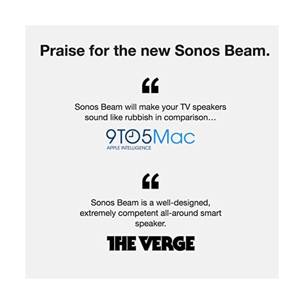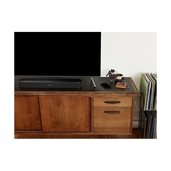 Experience incredible sound while streaming watching TV and movies, streaming music, enjoying podcasts and audiobooks, or playing video games all with voice control. Amazon Alexa is built right in so you can play music, check news, set alarms, and more, completely hands free. At just 25.6 inches, Beam won’t hang off furniture or block the TV. Go from unboxing to listening in minutes with just two cords and automatic remote detection. Add Sonos One SLs for surround sound or Sonos Sub for added bass. Connect to other Sonos speakers to enjoy brilliant sound in any or every room.