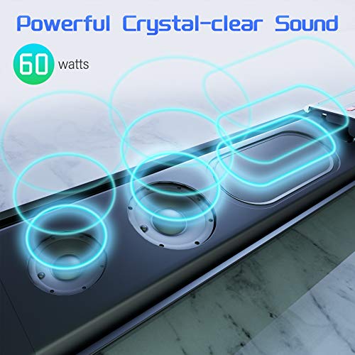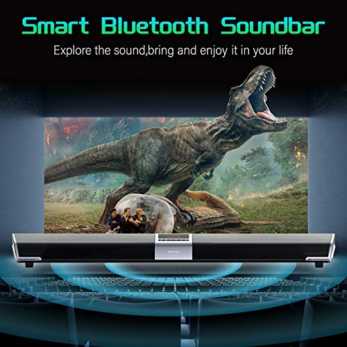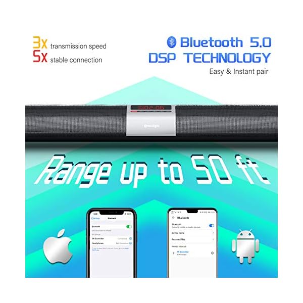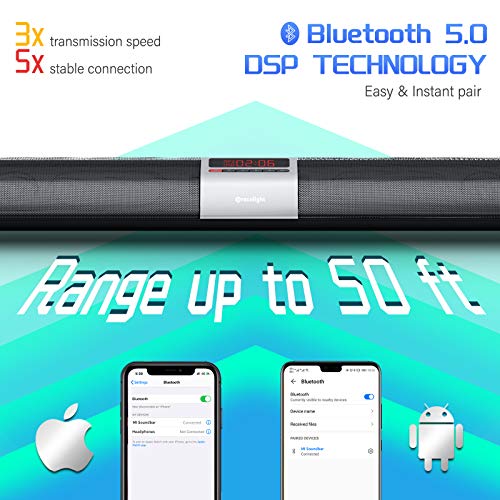 BLUETOOTH 5.0 & DSP TECHNOLOGY: Adopts latest bluetooth 5.0 which ensure the best speed and most stable transmission. Without delay & distortion, you will enjoy the most beautiful sound in the world. Transmission range up to 50 ft, allows you to control sound bar in any where