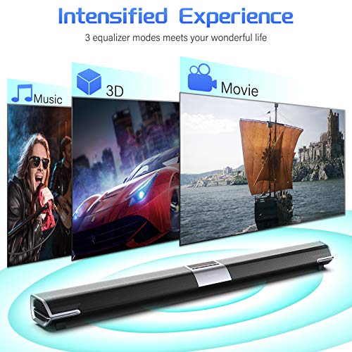 POWERFUL SOUNDBAR WITH 4 SPEAKERS: DracoLight 34-Inch Sound bars for TV, with 4 powerful full-range drives deliver crystal clear sound, upgrade your home theater experience with 3 sound mode, music, movie, 3D, you can stream your music wirelessly