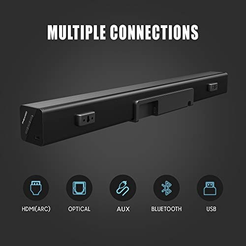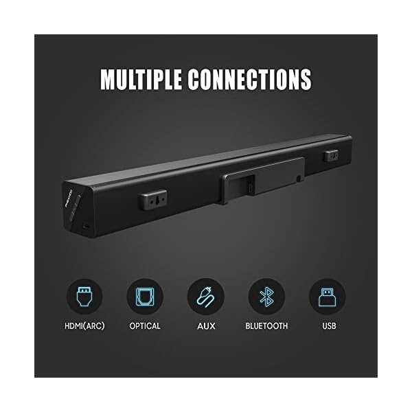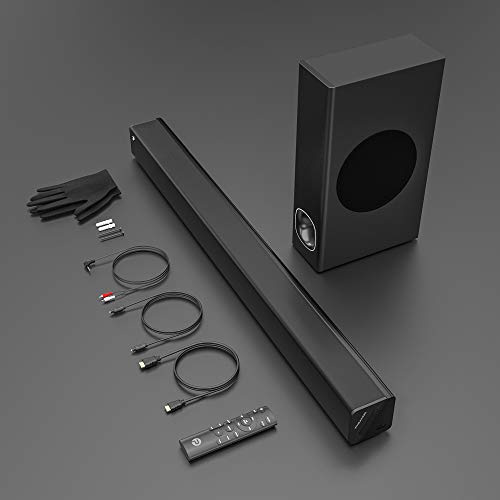 《 MULTIPLE CONNECTIONS 》: Wireless Bluetooth 5.0 with reliable stability and fastest transmission speed as high as 33 feet range, so you can control it with your mobile phone or laptop anywhere in the room with just a tap of a finger. Various wired cables including HDMI ARC, Optical, AUX input, and USB which you can easily connect to your TV or PC via these inputs.