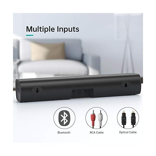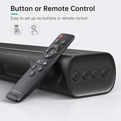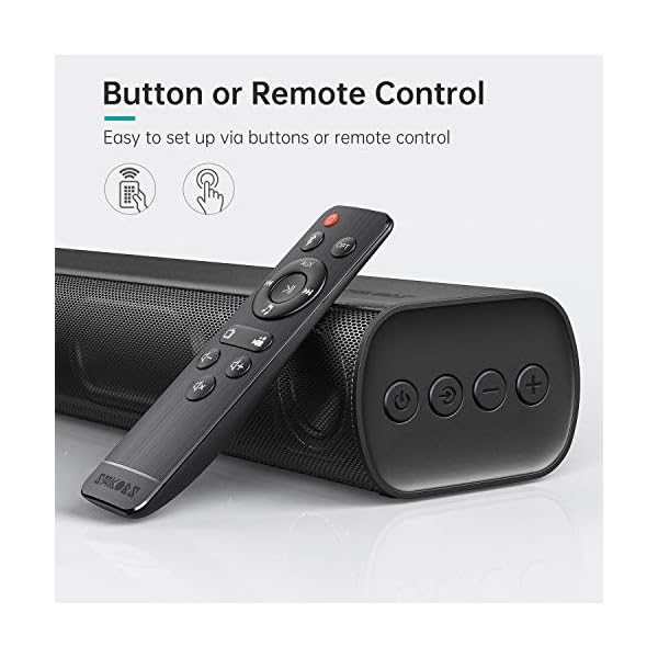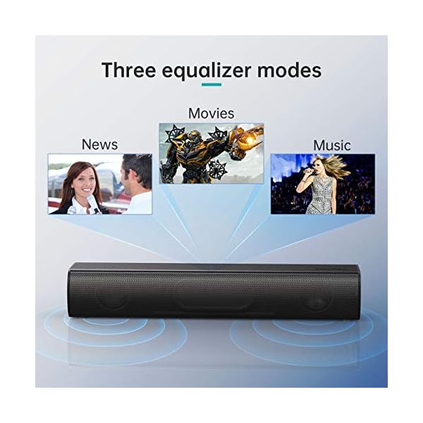 ✅【MULTIPLE SOUND MODES】Our TV Speakers Sound Bar features 3 different equalizer modes to choose from including movie, music, & TV Show mode that make a difference and wonderful hearing experience, Movie Mode provides louder surround sound to your movies, Music Mode adds additional clarity & melodious to your playlist, TV Show Mode provides crisp & clear audio. You can adjust the mode via the integrated top buttons or by using the included remote control while you sit on the sofa watching TV.