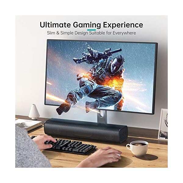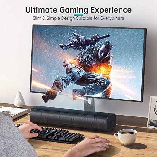 ✅【Space-Saving & Comprehensive Compatibility】PC Computer Speaker is 16-Inch and 2lbs, equipped with 2.50″* 2 full-range speakers to provide crystal clear sound and deep bass in 2.0 channel field. It features Bluetooth 4.2 version to ensure faster transmission in long-distance and stable connectivity which allows you to connect it easily with most devices out there like iPhone, iPad, tablets, smartphones, computer, televisions, mp3 & mp4 players, amplifier, laptop, etc.