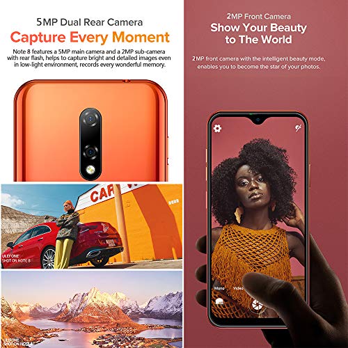 【5MP Dual Rear Camera+2MP Front Camera】Note 8 smartphone features a 5MP main camera and a 2MP sub-camera with rear flash, which adjust light and tone intelligently, combined with all-new Al scenes recognition and Al beautification, helps to capture bright and detailed images even in low-light environment, and the 2MP front camera with the intelligent beauty mode, enables you to become the star of your photos.