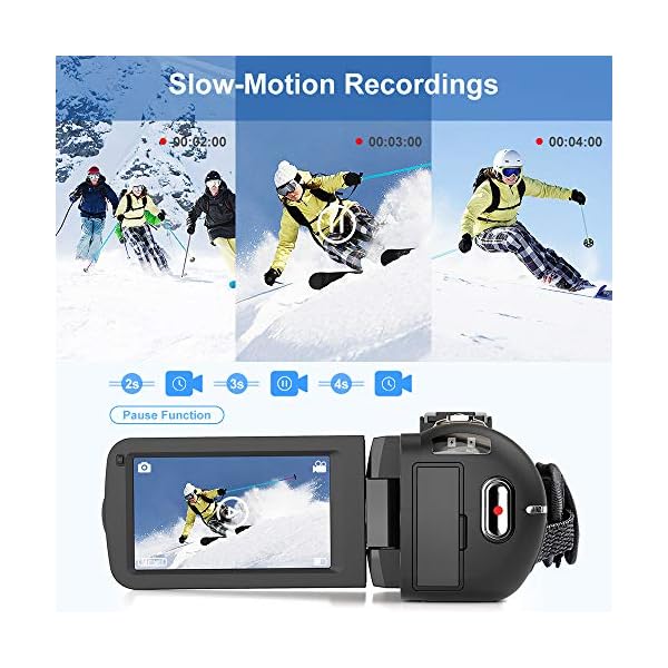 ★ Webcam & Slow Motion: The HD Camcorder is the only one that can stream directly to YouTube, Facebook and Instagram. You can also make video chat with friends or family. Slow motion-2X video recording, let you understand more clearly the course of action of the target. The fundamental role of slow motion is to extend the actual movement process.These special features help you create more exciting movies or videos through this small and lightweight vlogging camera