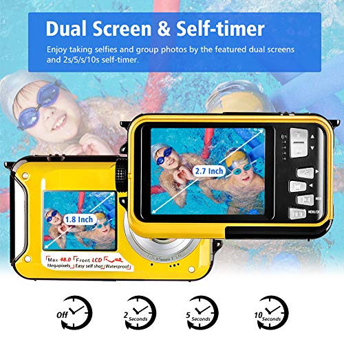 Waterproof Camera Underwater Camera Full HD 2.7K 48 MP Camera Selfie Dual Screens Point and Shoot Camera Selfie Dual Screen Waterproof Camera for Snorkeling – Estoreknight.com
