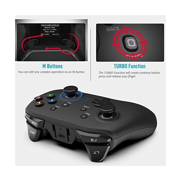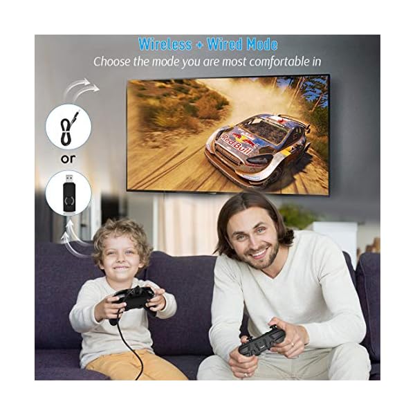 👍【Wireless & Wired Mode】: This is the most fantastic feature of this product. Once you are out of battery but are still willing to play, plug in the USB cable to connect the controller and game device, and switch to wired mode. Happy gaming!