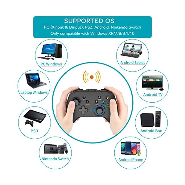🎮【Wide Compatibility】: The game controller is compatible with – Windows (Xinput and Dinput), Android TV Box, Vista, PS3, Switch and Android 4.0 and Up (OTG supported). It is not compatible with – Xbox 360, Xbox One, Mac, iOS, Playstation 4, Amazon Fire TV, Amazon fire stick.